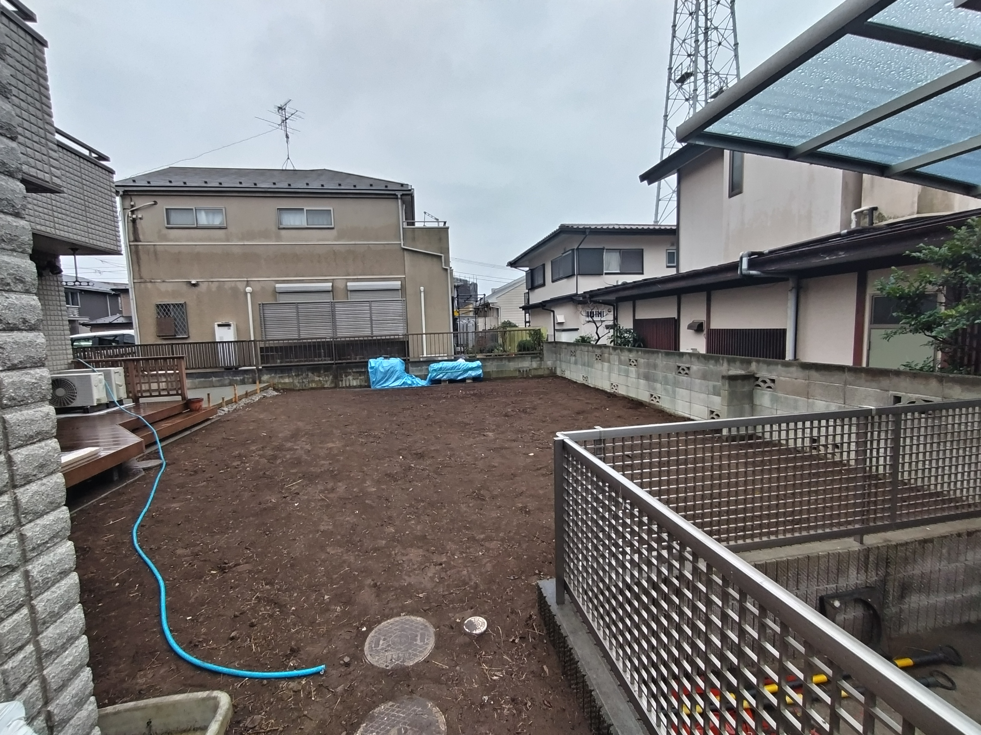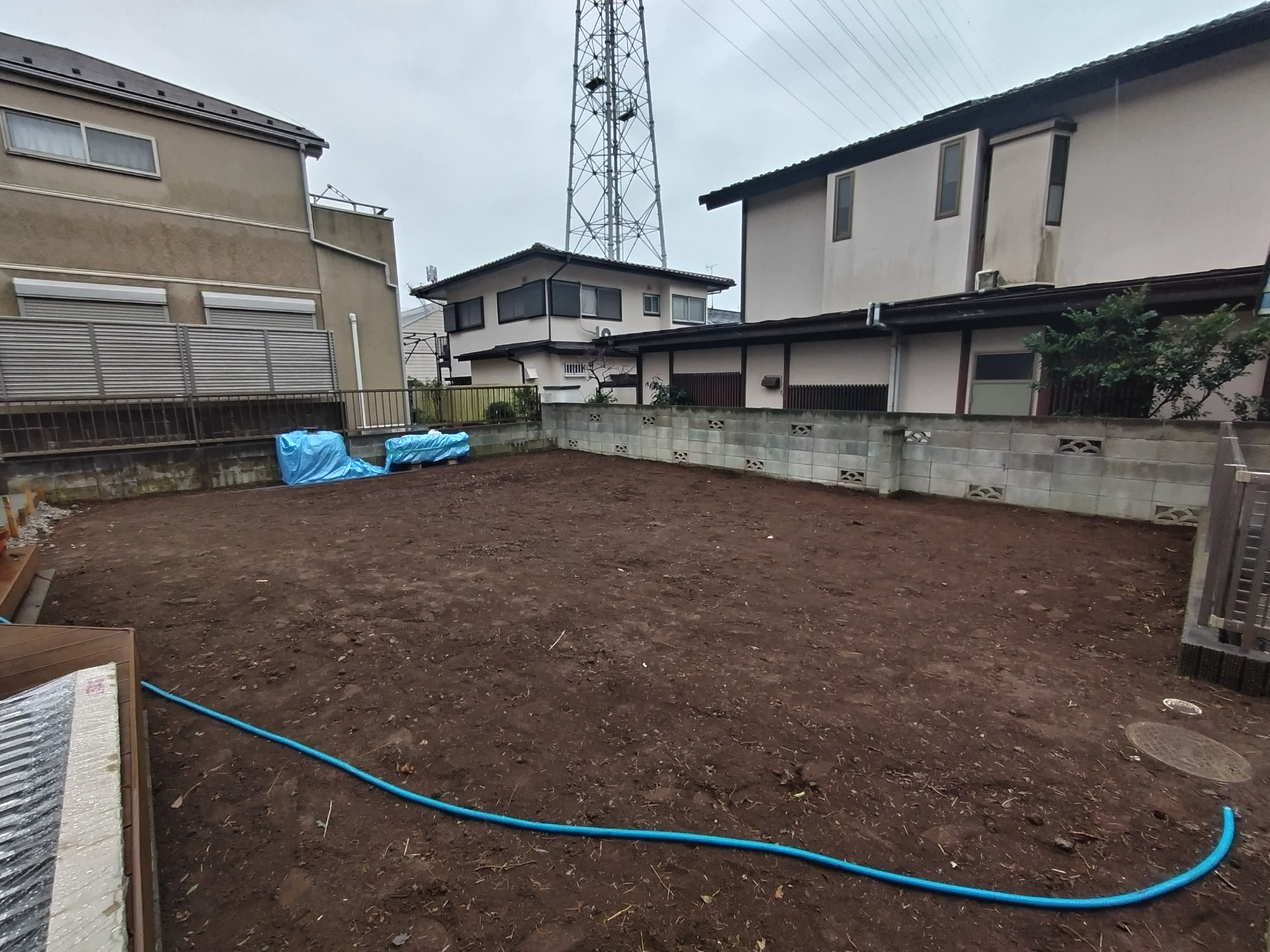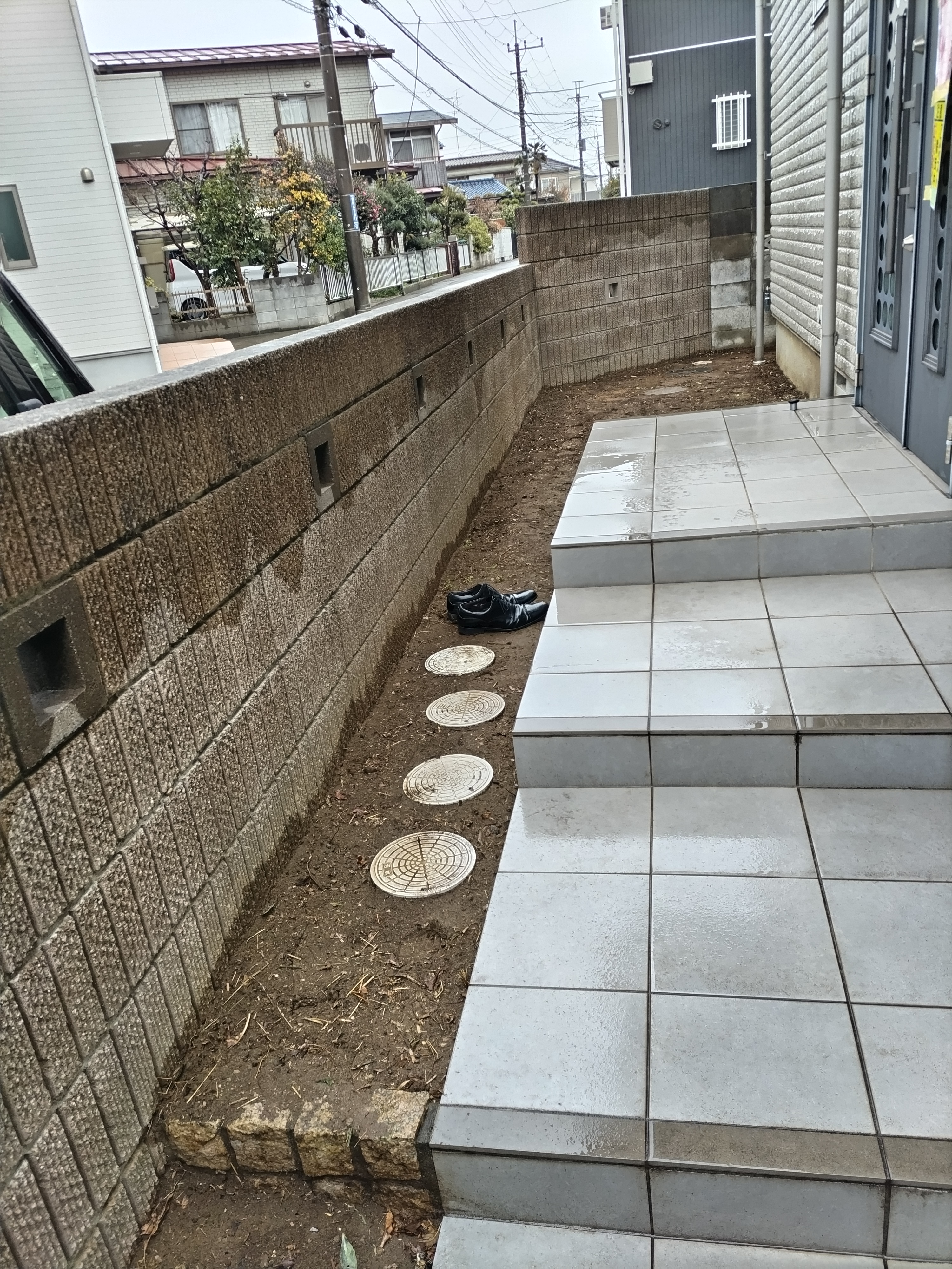広いお庭でワンちゃんが遊べるように芝生を多くしたいとのご希望で芝生を広くし、セルフガーデニングの場所を残し季節のお花を植えられるようにしています。 ブロックで作った花台や岩を積んでおしゃれに演出しております。
